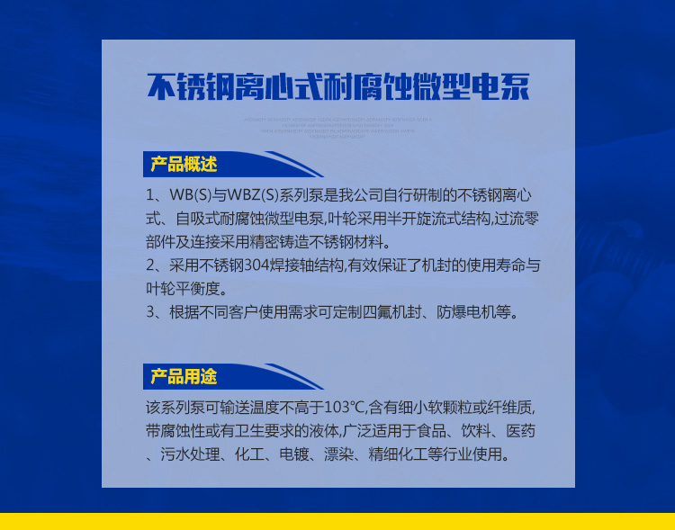 WB(S)不銹鋼離心式耐腐蝕微型電泵
